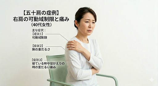 ・放散痛 :肩だけでなく、腕や指先にまで痛みが広がる感覚がある